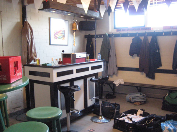 DEN HAAG – Kleedkamer bij SVH in Den Haag. Bar erin met flessen sterke drank alles! Fuck dat bubbelbad, zo hoort die kleedkamer te zijn! Prettig weeeeeeeeeeeeeekend!!