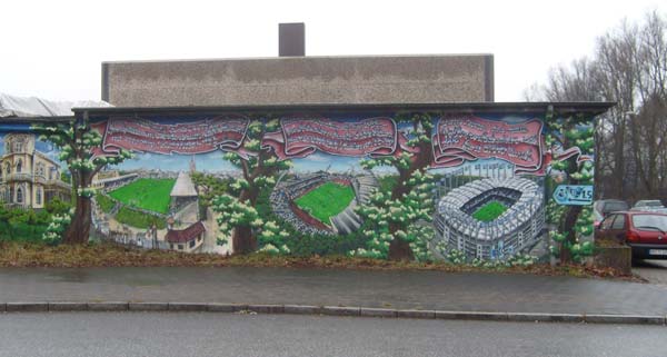 Hamburg – Aanstaande zondag staat-ie eindelijk weer eens op het programma. De Hamburgse Derby. Als opwarmertje doen we twee muurtjes. Hoewel we veel meer sympathie voor St. Pauli hebben, vinden we die stadionpieces van HSV veel en veel lekkerder. “Welcome in the hell of St, Pauli”. Kom op zeg…wat is dat voor afgezaagd gedoe? En dan die letters… toystilo! (Sietze dank)