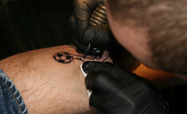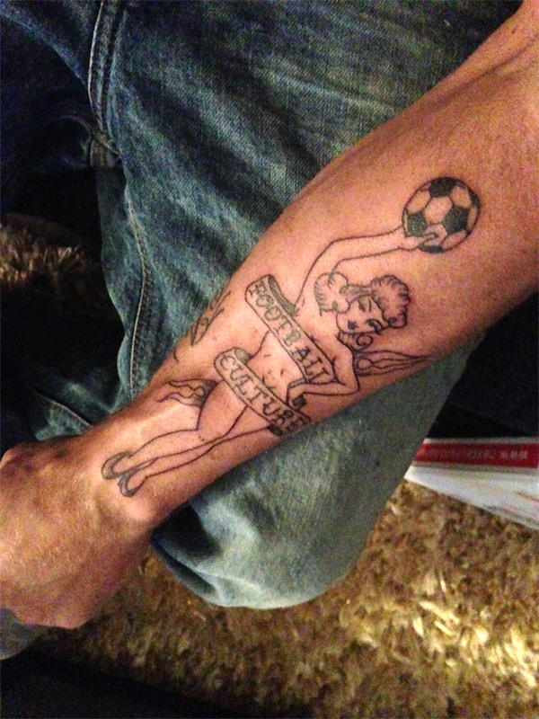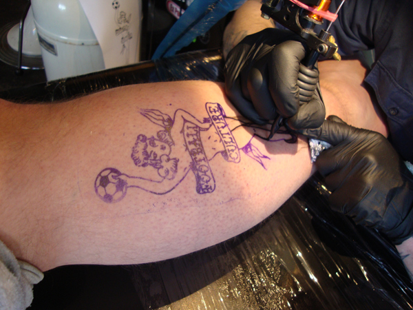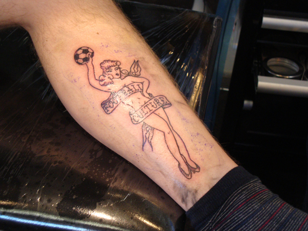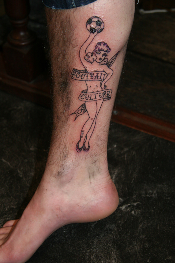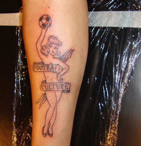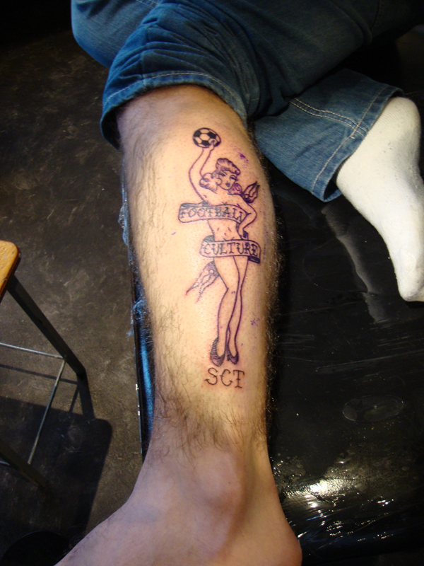 Tattoo – Vorig weekend zijn er FootballCulture-tattoos gezet bij 9 verschillende supporters. Op de borst, op de zij, op de kuit, op de arm, FC overal! FC Elite troepen! Gasten van Ajax, Feyenoord, PSV en Telstar kwamen langs bij Ben de Boef. De dag was voor het absolute hoogtepunt in het bestaan van FootballCulture. Een diepe buiging voor onze tattooboys! Misschien volgend jaar weer? Gratis weglaseren toch! Si-mon Kist-e-maker!