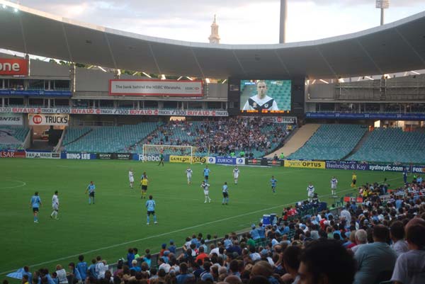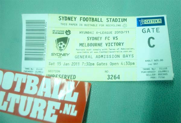 Sydney – Een van onze jongens is ff aan de andere kant van de wereld. Maar het leven gaat door… en dus bezocht hij afgelopen weekend de wedstrijd FC Sydney – Melbourne Victory. Hij maakte een korte fotorepo. Uit de losse pols. Met de telefoon. Het is tenslotte vakantie.