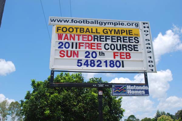 Australië – Spoedberichtje van onze man Down Under. Bij Gympie INC (vette voetbalclubnaam!) zijn ze op zoek naar scheidsrechters. Die bal in de muur, heuhhh!!!