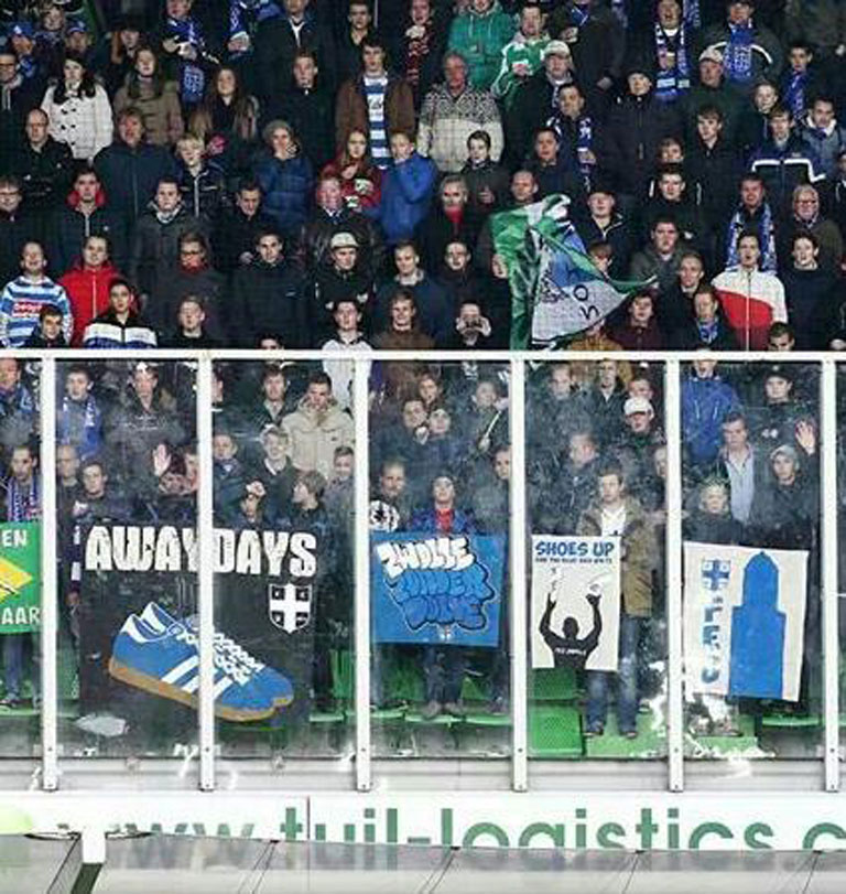 BANNER – The boys of PEC Zwolle showed a banner in the away end during FC Groningen – PEC Zwolle… ZWOLLE ZONDER DOLLE! It was based on our t-shirt, which makes us proud. (big up to Olaf and tnx to the creators of the banner!).
