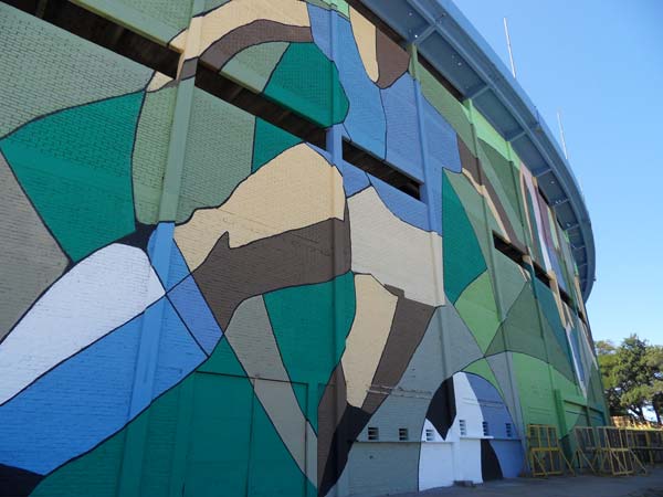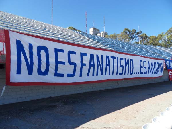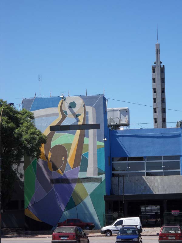 Hier dan (eindelijk) weer een meel van mij uit Zuid Amerika. Ik ben nog steeds aan deze kant van de oceaan on tour, en ik kan jullie zeggen, dat verveelt geen moment. Onlangs Montevideo aangedaan, de hoofdstad van Uruguay, je weet wel, dat kleine land dat geschift is van voetbal, 2x de wereldbeker heeft gewonnen waarvan de eerste in eigen huis. Tsja, het stadion waar de eerste WK-finale is gespeeld kan niet worden overgeslagen, zou een crime op zicht zijn. Jullie hebben een haat/liefde verhouding met kunst las ik onlangs op de site, en ik heb er zelf de ballen verstand van, maar dat de ´murals´ op bijgaande foto´s dik zijn weet ik wel! Mooie plaatjes op het het Estadio Centenario van het 1e wk-affiche. Oh ja, er werd ook nog gespeeld, Bella Vista tegen Nacional. Het werd 0-1, maar die tekst op dat doek, dik toch?! Geen speld tussen te krijgen.