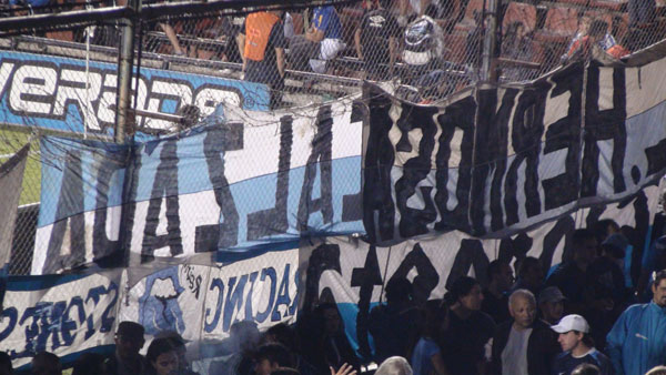 Buenos Aires – Hoor jij iemand zeuren over slecht zicht? Daarom toch. Als je spandoek maar goed in beeld is. Is veel belangrijker!