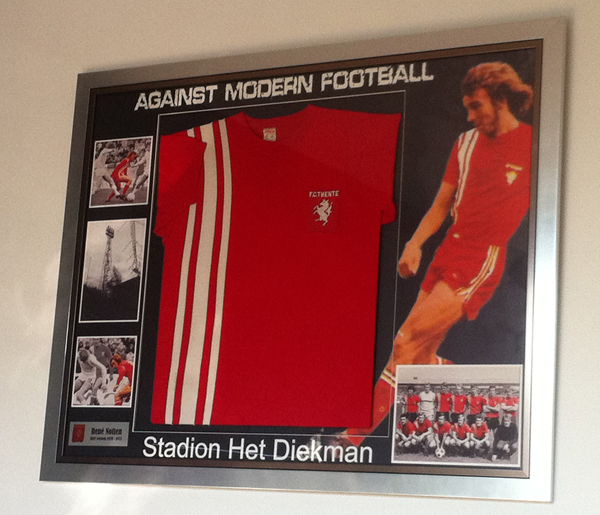 Shirt – René Notten. Weet iemand die nog? Met die baard. FC Twente, Feyenoord en Ajax. Verzamelaar Ruben van FC Twente-items liet een origineel shirt van Notten ut 1971-1973 inframen. Prachtig! Maar wat ons dan direct opvalt… Ajax-supporters klagen al een tijd over die 3 strepen op het Ajaxshirt. Wat FootballCulture betreft zeer terechte klachten, want spuuglelijk. Maar adidas maakte het in 1971 dus bij FC Twente nog veel bonter. Of weet FootballCulture niets en is dit shirt niet van adidas?