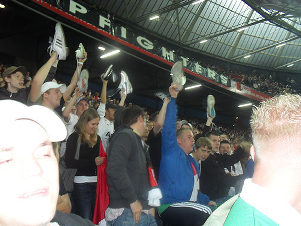 shoes off – In als ons enthousiasme maakte we wat foutjes. En dat hebben we geweten. Iedereen dank voor het mailen. De “shoes off”- actie tijdens De Graafschap-NEC was niet de Nederlandse primeur. De Nederlandse primeur vond plaats tijdens Feyenoord – Roda of tijdens Sparta – FC Utrecht. Zoeken jullie zelf ff uit wie er wint? Vak S of de Utreg City Saints?