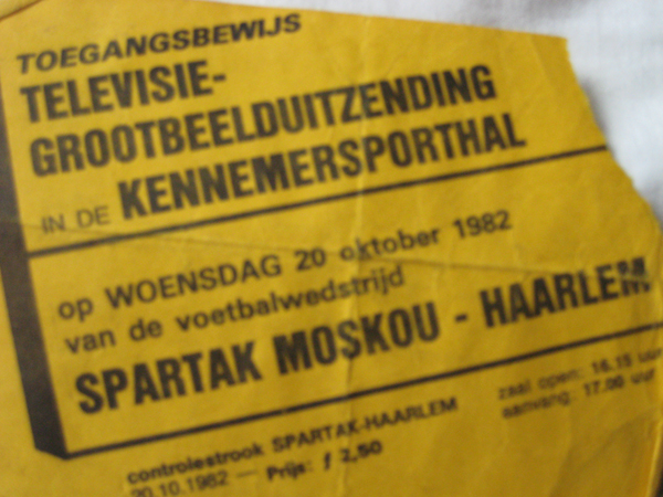 Beste(Kut) FC, vandaag ff stil staan bij de andere tijden?? 20 oktober 1982, toen een “grootbeeld uitzending” sowieso nog vet bijzonder was, toen de HFC Haarlem nog springlevend was en “Europees” ging en toen er – mooi kut – zomaar honderden Russen stierven op de trappen van het Loezjniki Stadion. Maar wij in de Kennemersporthal wisten dat toen nog niet en baalde vooral dat er in de laatste minuut toch nog eentje invloog. Terwijl Pietje Keur er zeeeeker 3 had kunnen maken.