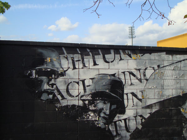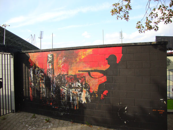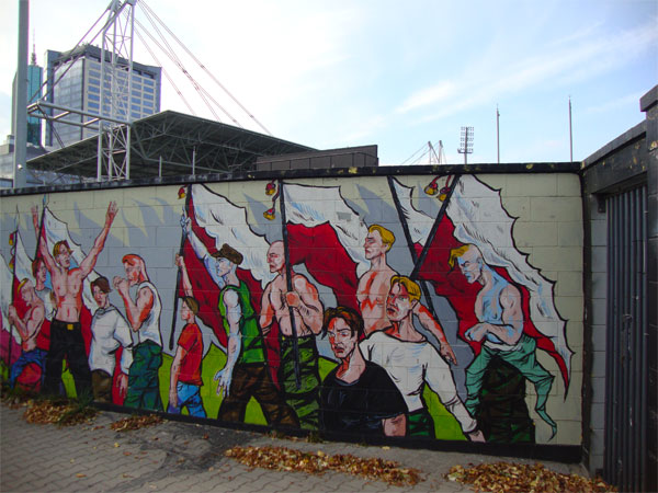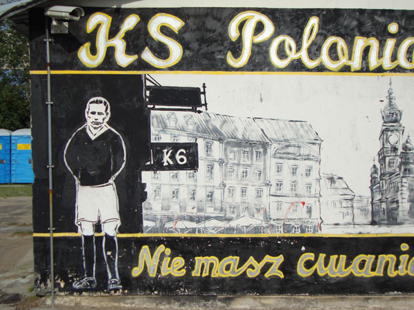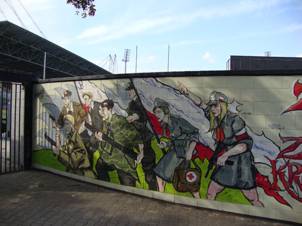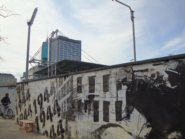 Warschau – We zijn niet zo van de lange verhalen hierzo. Doe ons de plaatjes maar. Daarom gingen we naar de muur rondom het stadion van KSP Polonia. De graffiti vertelt het verhaal van “De opstand van Warschau”. De Polen komen in 1944 in opstand tegen de Duitse bezetting. Zonder succes. Er kwamen minstens 150.000 burgers om het leven en zo’n 85% van Warschau word door de Duisters verwoest.
