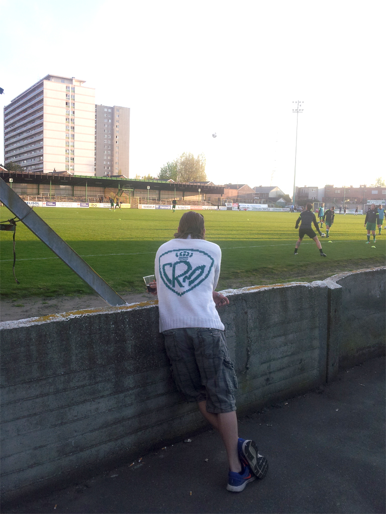 FASHION – Zelfgebreide voetbaltruien (liefst met clublogo) blijven, wat ons betreft, het hardste mode-item op de tribune! Complimenten voor deze. (dank aan Stadiongebod)