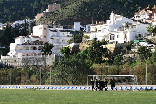 Spanje – Op trainingskamp in Marbella speelden we op dit veld in Benahavis een oefenwedstrijdje tegen KSC Lokeren. Een biljartlaken met een fantastisch uitzicht! (rick dank!)