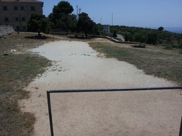 Boven op de berg aangekomen lopen we door heel dat gebouw heen, ik loop een hoekje om naar buiten en wat schetst mijn verbazing: die gasten voetbalden gewoon stiekem in de achtertuin van dat klooster. En ik maar denken dat mensen in een klooster zich volledig tot god moesten richten.